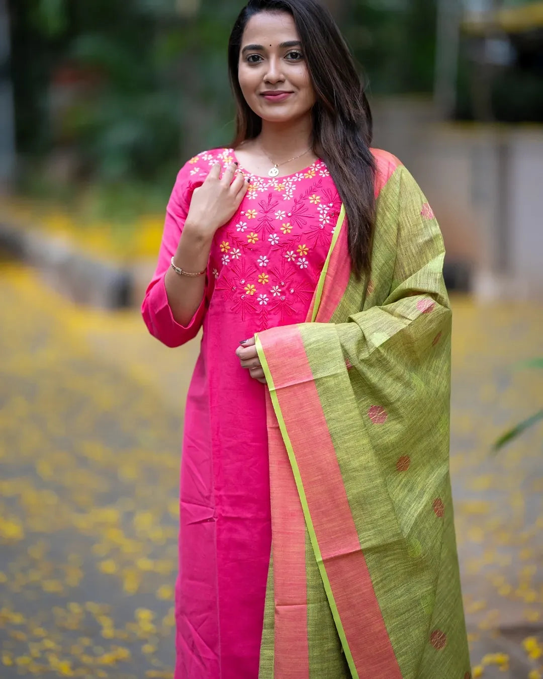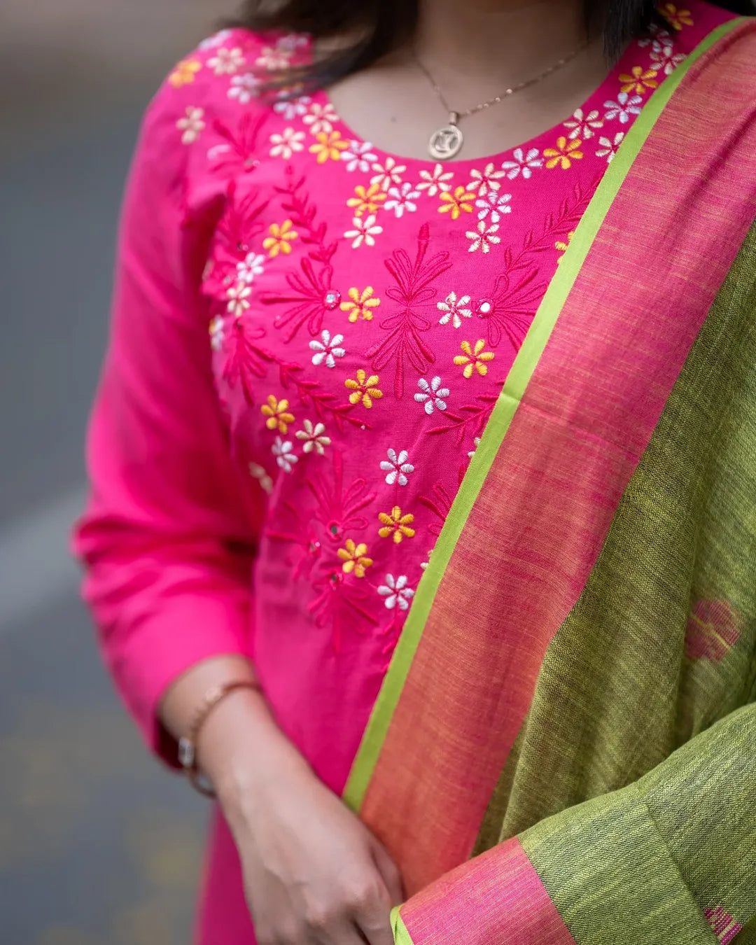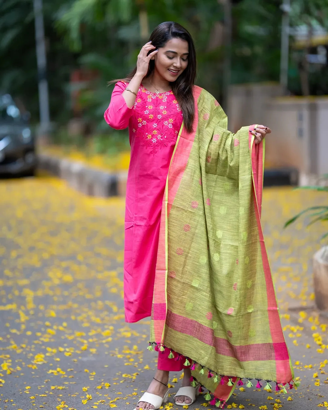 LOOK UR BEST THIS FESTIVE SEASON IN OUR CLASSY EMBROIDERY HANDLOOM SET WITH linen DUPATTA