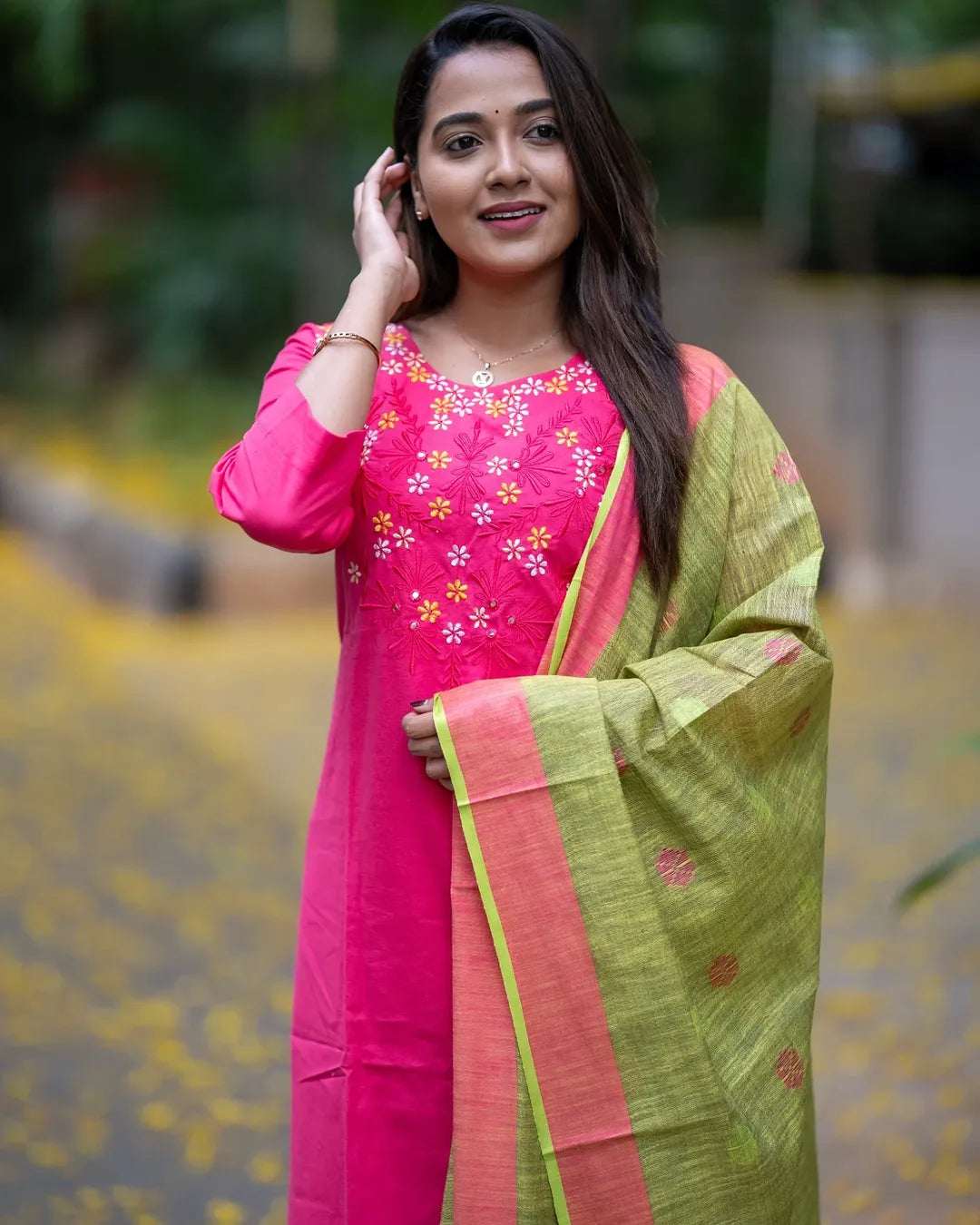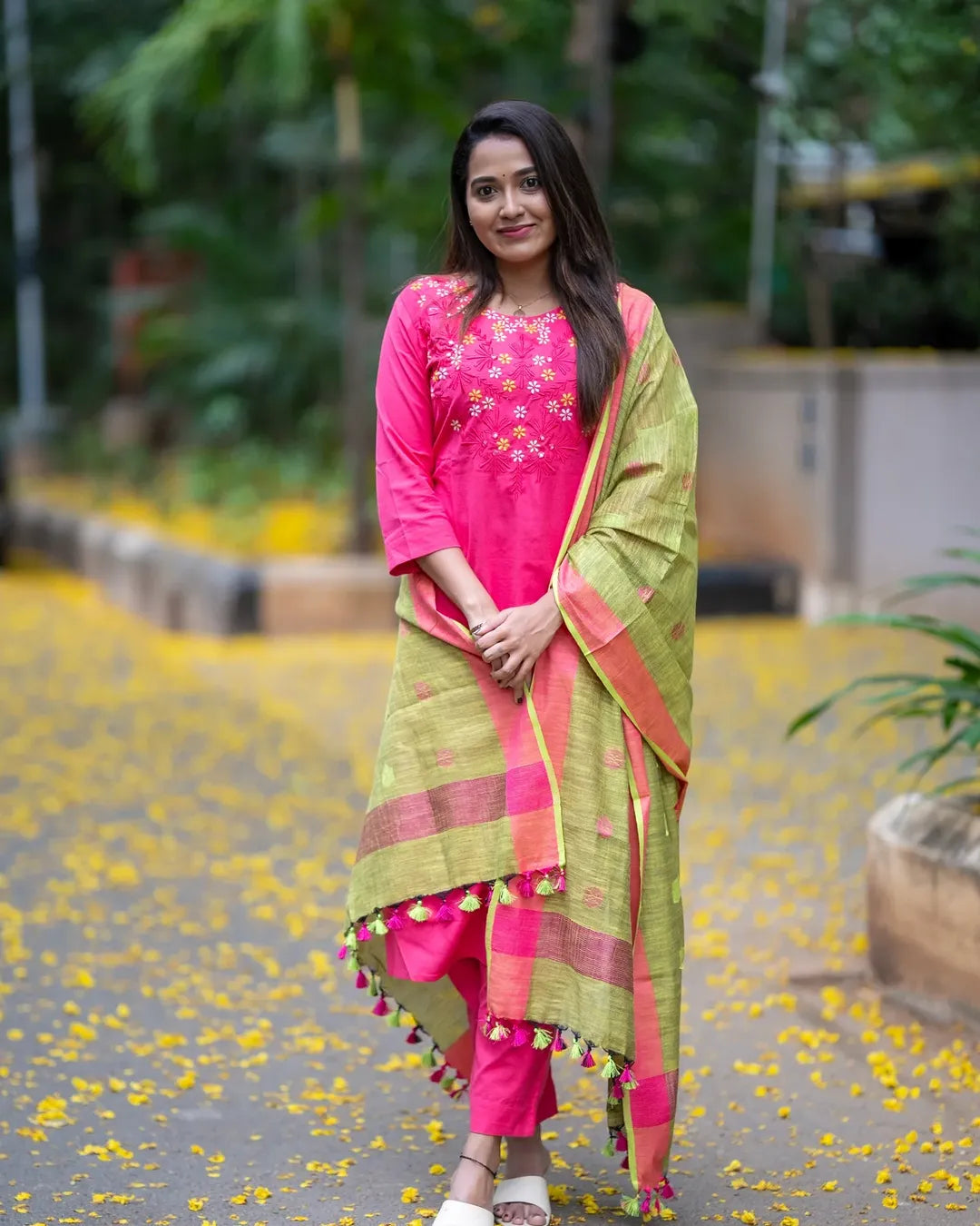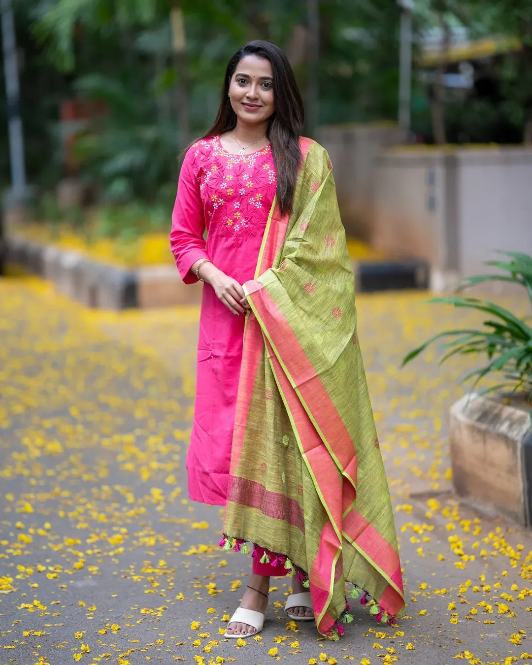 LOOK UR BEST THIS FESTIVE SEASON IN OUR CLASSY EMBROIDERY HANDLOOM SET WITH linen DUPATTA