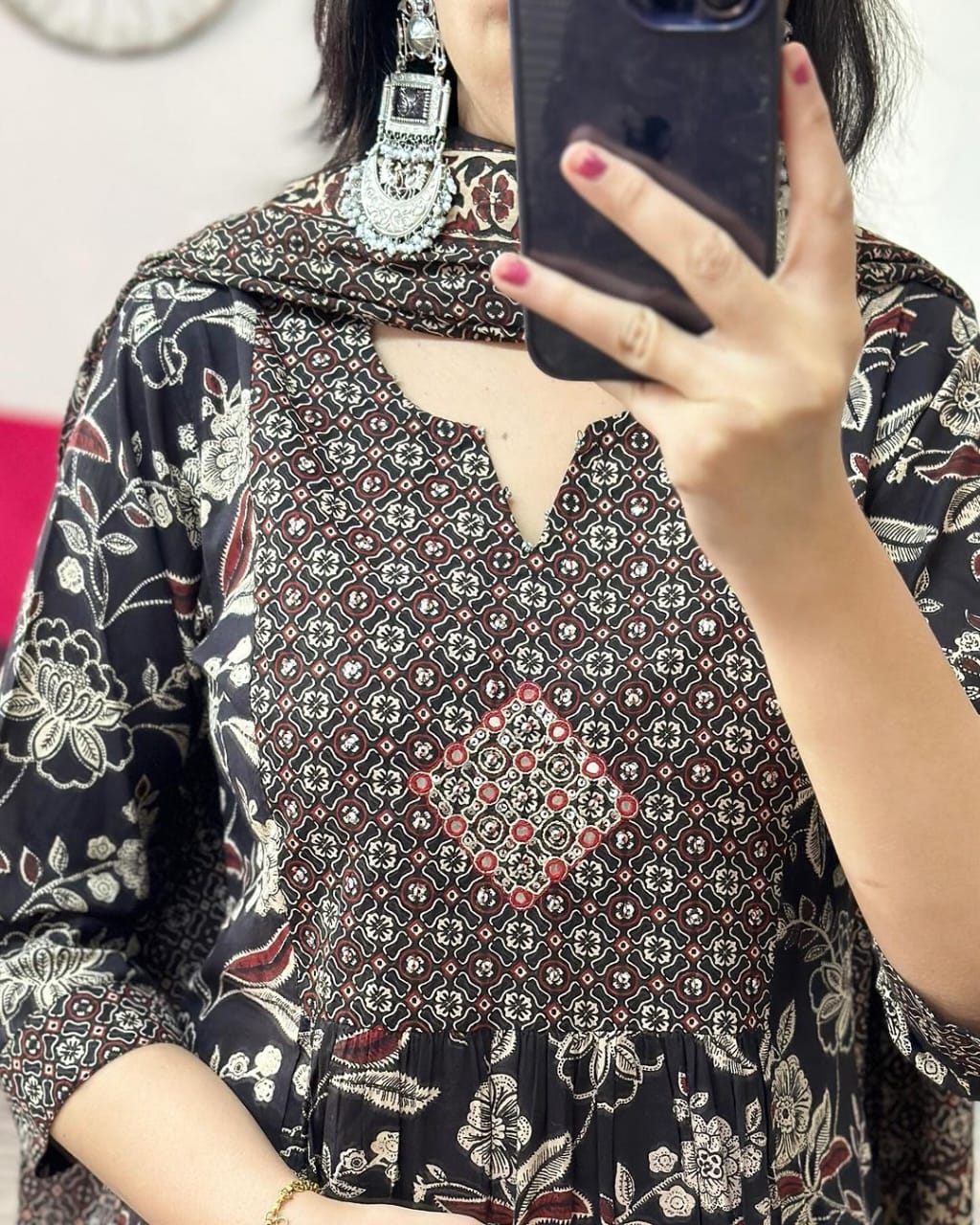 ๐๐ *Summer Special Cotton Fabric Beautiful Print And Hand Work Kurti Paired With Pant And Full Printed Dupatta* ๐๐